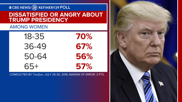 Young women are the group most unhappy with Trump presidency - CBS News / Refinery 29 poll CBS News, August 13, 2018