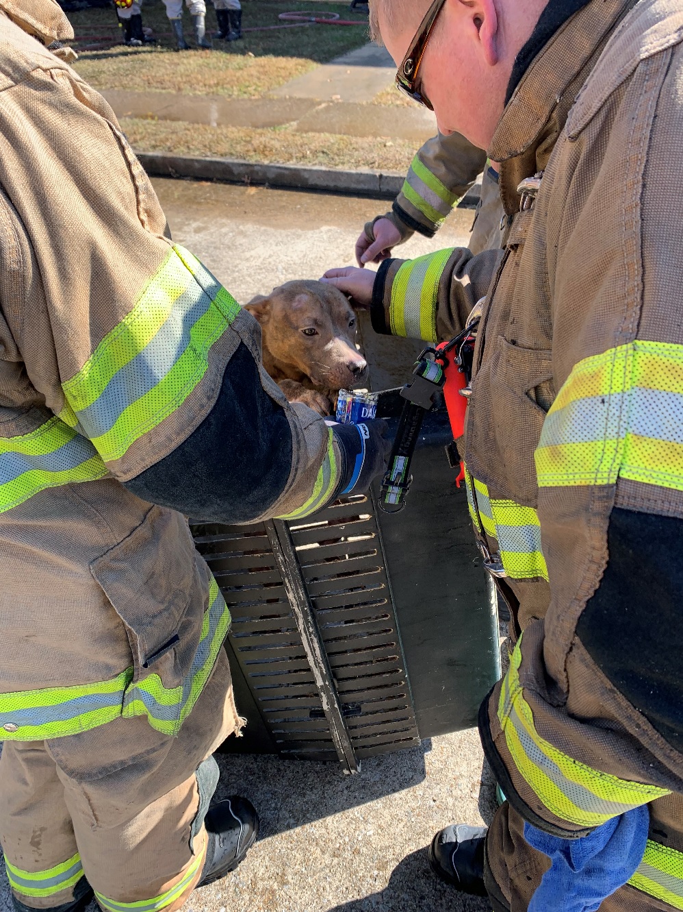 Firefighters tried to calm him down and give him water.