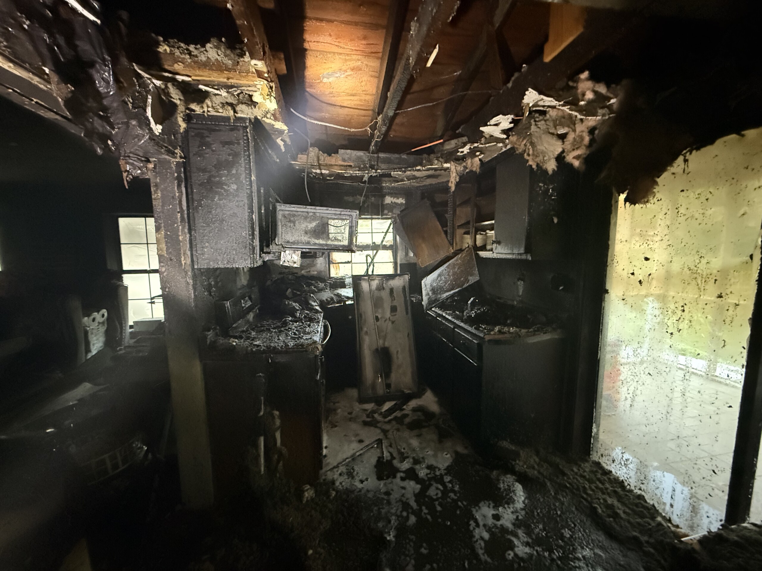 The fire was located in the kitchen and caused heavy smoke and fire damage to the entire house.